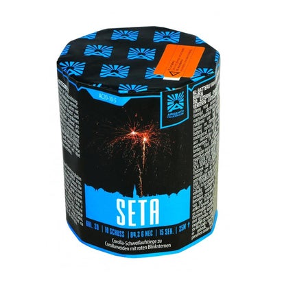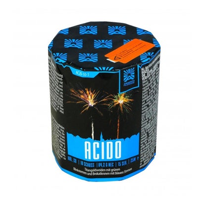 Argento Matrix ist eine 16-Schuss-Feuerwerksbatterie im Kaliber 20mm. Brokatfeuertöpfe zu Leuchstpur-Aufstiegen, abschließend in Brokatgold-Buketts mit abwechselnd tiefblauen oder blutroten Sternen. Argento Matrix erfindet das Rad zwar nicht neu, bietet aber wie von Funke Feuerwerk gewohnt hochwertige Qualität!