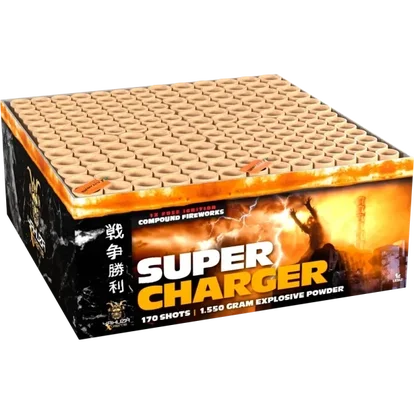 Hochwertiger Wellpappkarton mit 8 großen Raketen, 4 aufsteigenden Kreiseln, 4 Römischen Lichtern und weiteren 62 Ganzjahres-Effekten.