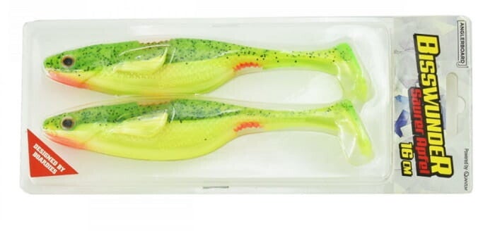 Dieser 16cm weiche Köder lockt Raubfische mit seiner breiten Aktion an. Die Brustflossen und die leuchtend roten, auf UV-Strahlung reagierenden Wundmale auf dem Rücken und im Analbyereich erzeugen Mikrowirbel und dienen als farbenfrohe Signale, um einen Räuber davon zu überzeugen, dass er es mit einem verletzten Fisch zu tun hat. Mit seiner flexiblen Schwanzspitze und dem hinteren Flossenwinkel lockt der BisswundeR auch im Herbst Fische an, selbst wenn er mit einem leichten Jigkopf bewaffnet ist. Die BisswundeR funktioniert aber auch gut beim flachen Einholen. Neben Hechten lockt der Köder auch große Zander und Welse an.