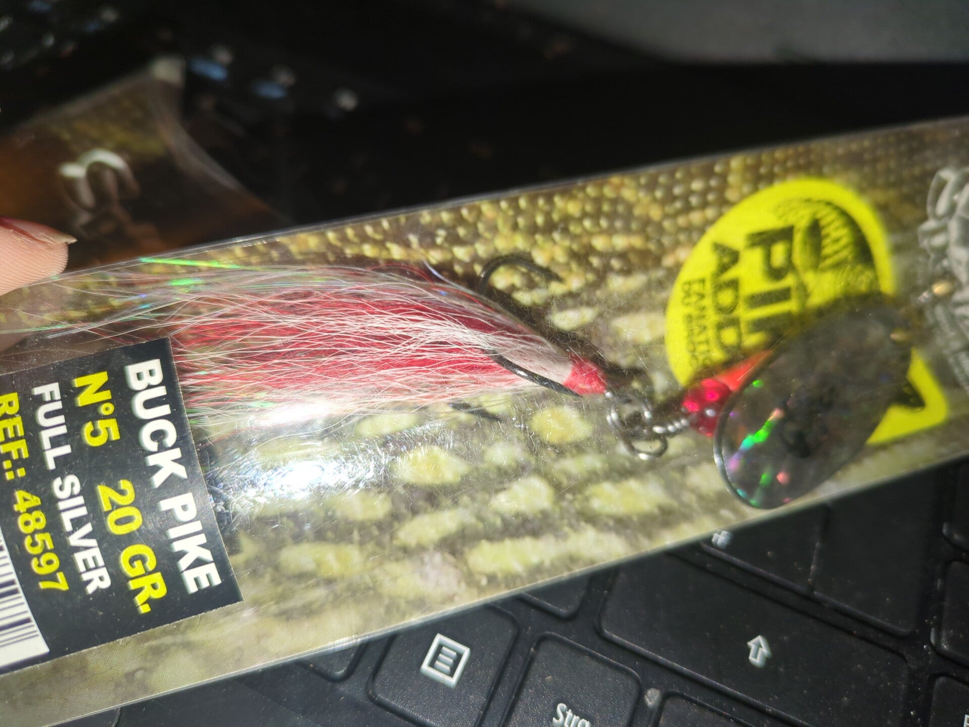 Ausgestattet mit einem Löffel vom Typ "Fingernagel", rotiert der Buck Pike schon bei langsamer Geschwindigkeit ganz hervorragend. Der Bucktail Teaser am Drilling enthält Tinsel Flash Fäden, ein Garant dafür, dass der Buck Pike nicht übersehen wird. Ein durchsichtig rotes Auge dient als Ziel für den Raubfisch. Die Achse wird aus robusten 1,2mm Draht aus Edelstahl gefertigt. Hier in der Größe 5.